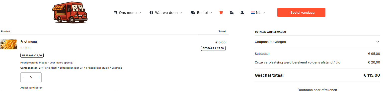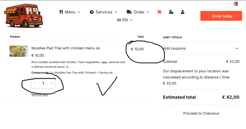 2. In the shopping cart, I see 0,00 € instead of the total amount (individual x total amount of composites) - the right column shows the correct price.