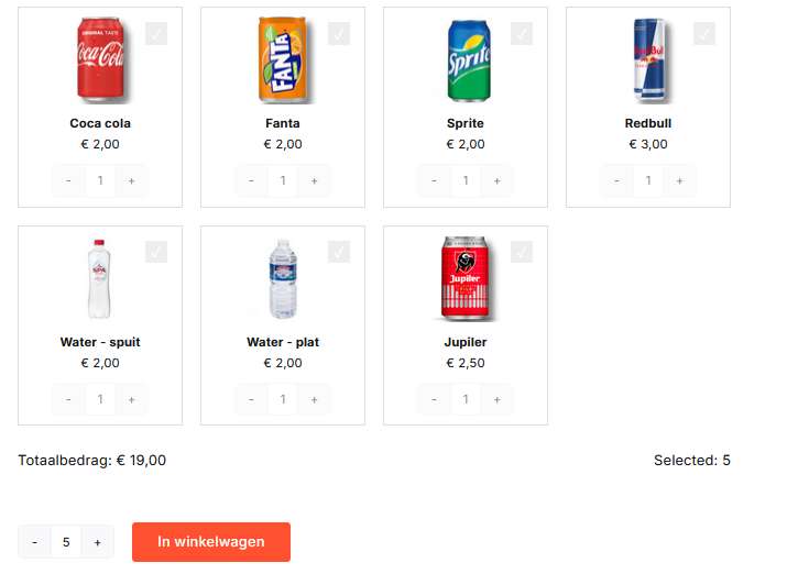 I have the following problem: individual (component) items can be clicked and the prices add up.