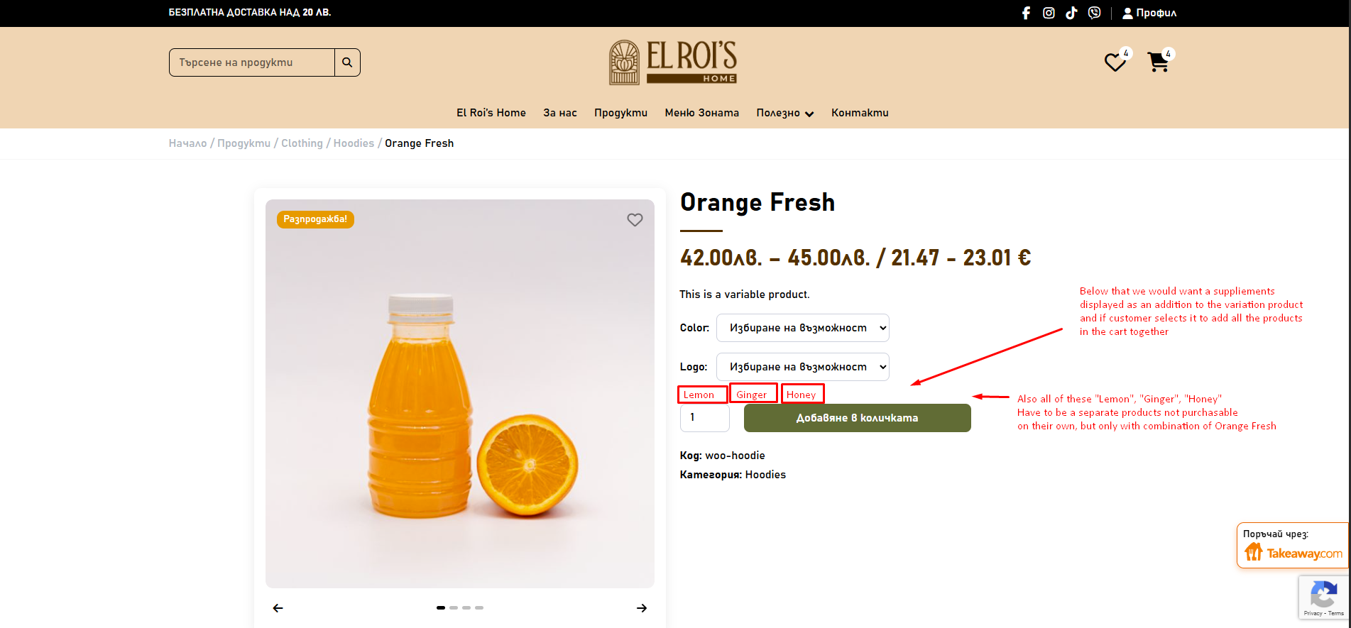 Also this supplements have to be as separate products which are not sellable on their own but only when you purchase Orange Fresh for example. Is this somethig achievable with this plugin or you can suggest another one of yours?